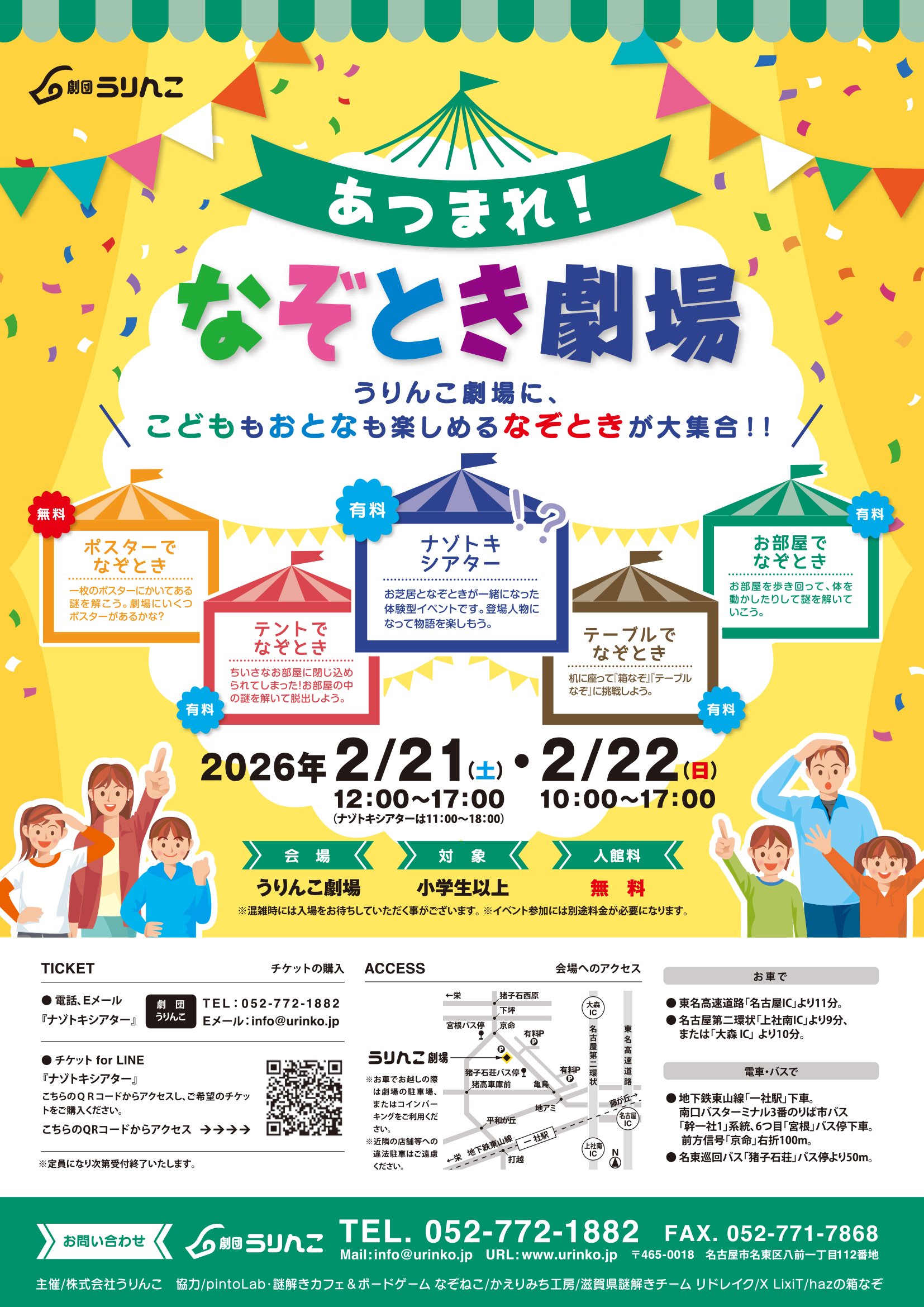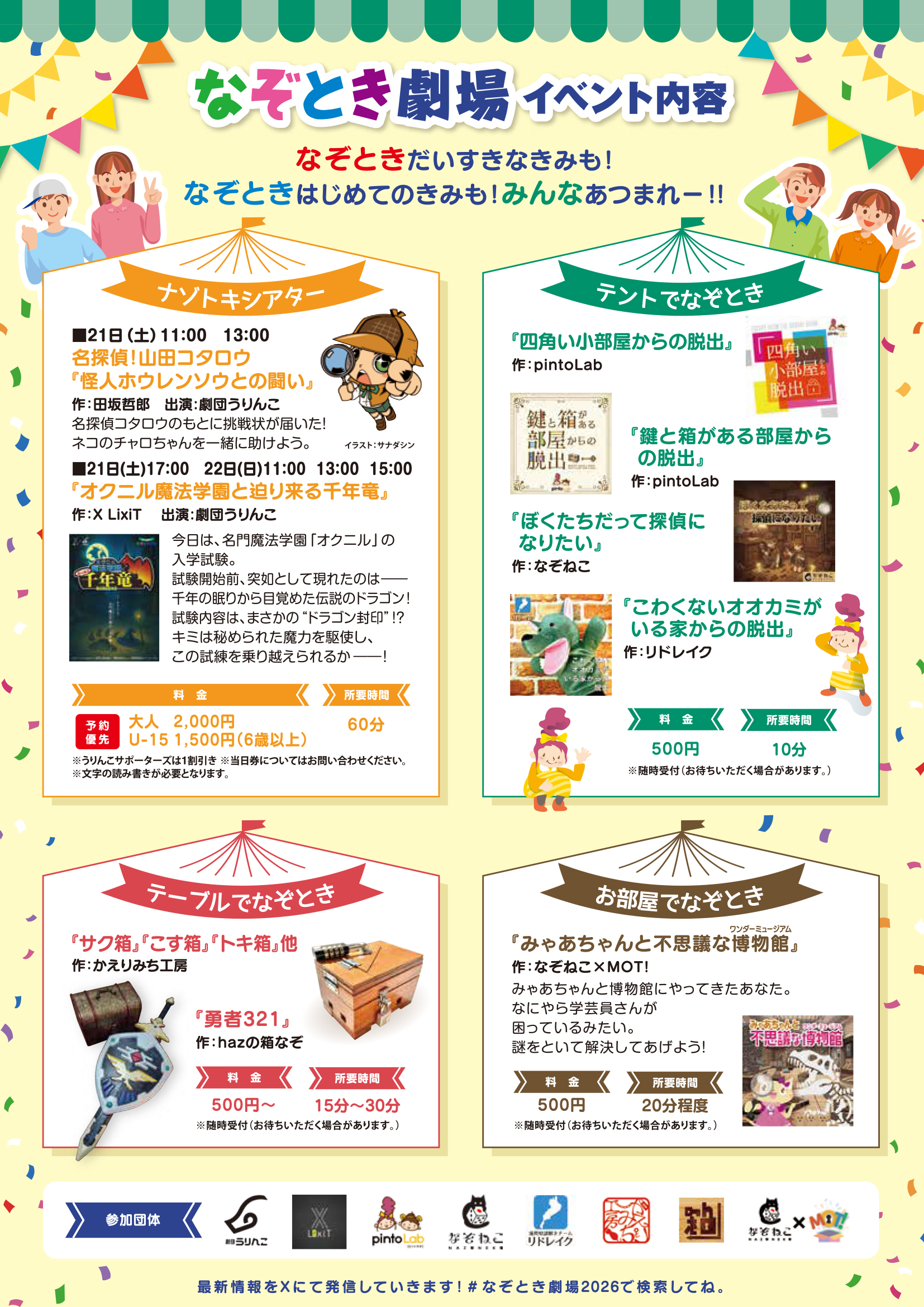 協力:pintoLab・謎解きカフェ&ボードゲームなぞねこ・X LixT・かえりみち工房・リドレイク・haz箱